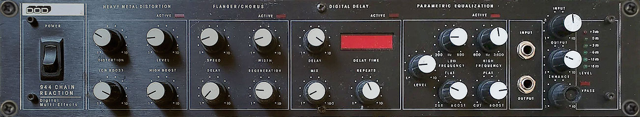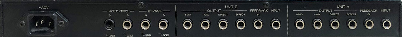 a true modular multi-effectsprocessor. It contains a grid that holds modules and alows for completely free feedbackloops (for putting effects in the delay-feedback path or for special flanging or phasing)