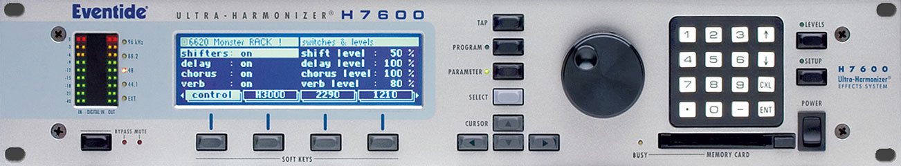 Eventide Harmonizer® effects processors are considered “classics” by musicians and audio professionals. One reason is that Eventide doesn't believe in planned obsolescence. Eventide gear has proven staying power over the decades as evidenced by the thousands of effects processors that remain in use. Eventide introduces a new model only when the state-of-the-art advances to the point that a major leap in performance is possible. That time has come and the Eventide H7600 is that product. The H7600 builds on the rich heritage of Eventide's world-class H3000/DSP4000/DSP7000 series. With more processing power than its predecessors, the H7600 is the most powerful two-channel effects processor you can buy. More capabilities and better performance— the densest reverbs, lushest choruses, and highest quality pitch change ever. An enhanced user interface adds search capability so that the H7600 is even faster and easier to use - in the studio or on the road. The H7600 Ultra-Harmonizer effects processor brings you one step closer to stereo effects Nirvana.