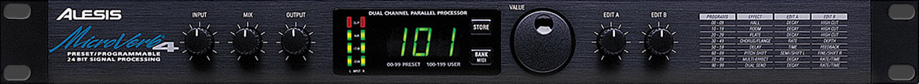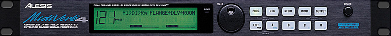 In 1986 Alesis produced the first under-$1000 16-bit professional effects processor, the MIDIverb, which had a 12-bit A/D converter and MIDI control. It was joined later in the year by the Microverb, which lacked MIDI but had a 16-bit A/D converter.