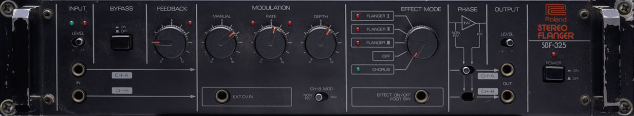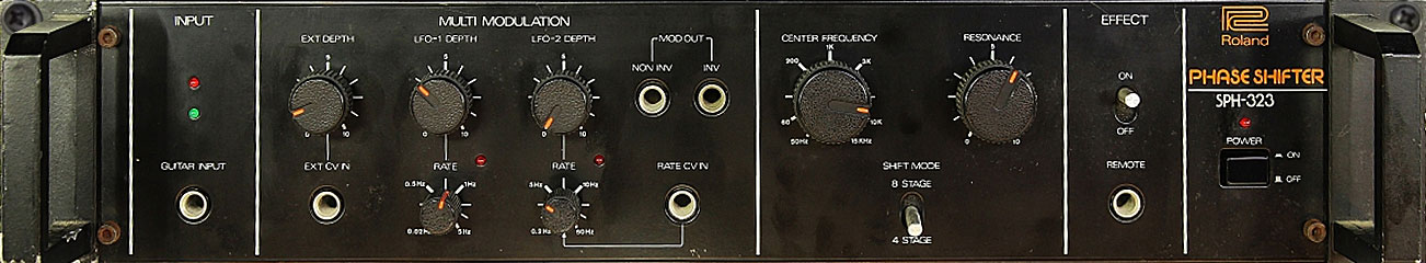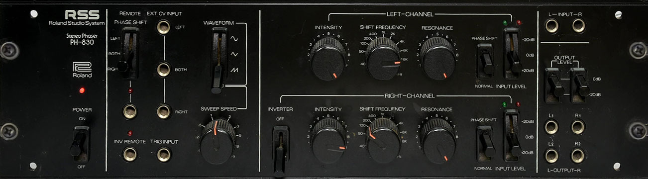 When it comes to rack effect-units, Rolands' first product was the PH-830 Stereo Phaser (1978), under the RSS monicer (Roland Studio System) which soon disappeared again. In this 2u orange-on-black line also came the SBF-325 flanger (1979), the SDD-320 Dimension-D chorus (1979) and the SPV-355 p/v synth (1979) and the SPH-325 phase shifter (1980).
