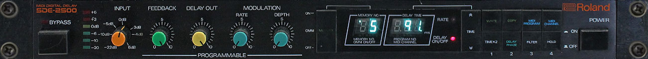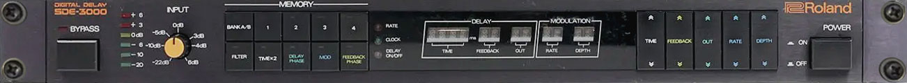In 1981 Roland released the sde-2000 digital delay, entering into digital effects and into a new, more contemporary look of 1u boxes with bright coloured knobs that was continued for the decade. The SDE-3000 delay being the most iconic, made famous by Steve Vai.