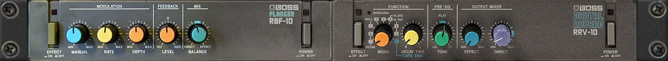 Around mid-eighties BOSS also started producing rack-effects, starting wih the ce-300 chorus (1984) as a full 1u unit, but soon shifting towards a nifty half-rack system, a guitarist-oriented format they kept untill 1999.