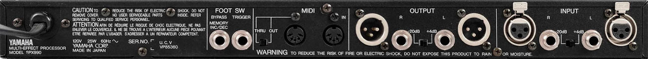 The SPX2000 memory is organized into three banks: "PRESET," "CLASSIC" and "USER." The PRESET bank contains 97 programs, 17 of which feature Yamaha's acclaimed REV-X reverb algorithms. REV-X reverb programs deliver the richest reverberation tone and smoothest decay available. There are separate REV-X Hall, REV-X ROOM, and REV-X PLATE algorithms, and corresponding new parameters such as ROOM SIZE and DECAY ENVELOPE that contribute to higher definition and finer reverb nuance. The other 80 presets are popular SPX programs such as gate reverbs, delays, pitch effects, modulation and other special effects. Other advanced algorithms - such as Multi-band Dynamic Processors - are inherited from the DM series Digital Production Consoles. All programs have been created through detailed listening and editing by leading engineers.The "CLASSIC" bank contains 25 programs reminiscent of the original presets from early SPX models such as the SPX90II.The "USER" bank can store 99 user programs.